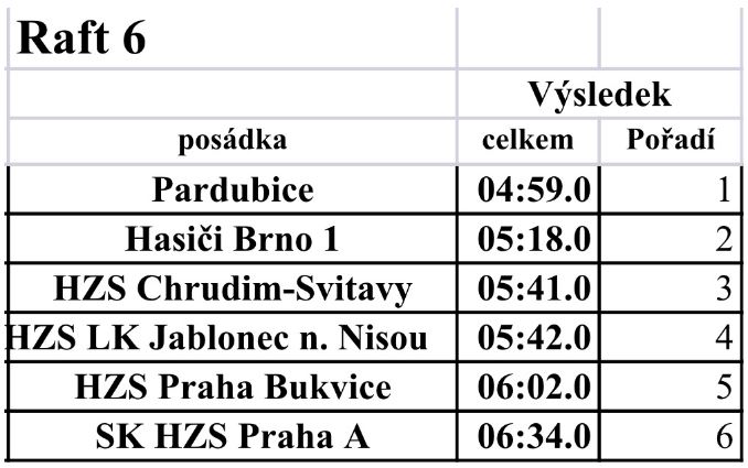V kategorii Raft 4, kdy vodní kanál určený pro slalom i rafting zdolávají čtyřčlenné posádky, do závodu nastoupili Jiří Šilhán, Pavel Pažout, Jan Vojtíšek a Lukáš Frkala. Zástupci všech tří směn stanice Jablonec nad Nisou nakonec v silné konkurenci vybojovali sedmé místo. V kategorii Raft 6, tedy v kategorii šestičlenných posádek, se o nejlepší umístění poprali Zdeněk Průša, Lukáš Frkala, Jiří Šilhán, Pavel Pažout, Jan Vojtíšek a Michael Šrytr. V této kategorii skončili zástupci HZS LK na smolném čtvrtém místě, když jim bronzové medaile utekly jen o setinu vteřiny.