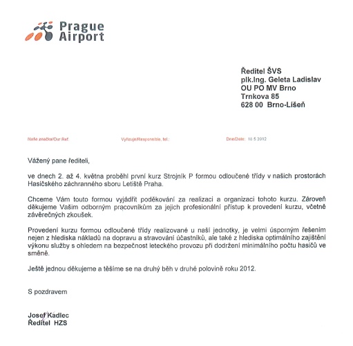 - Poděkování ředitele útvaru bezpečnosti ČEZ a. s. (6.2.2014)