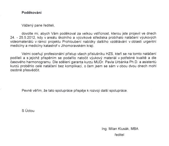 - Poděkování ředitele Zdravotnické záchranné služby Jihomoravského kraje (7.4.2015)