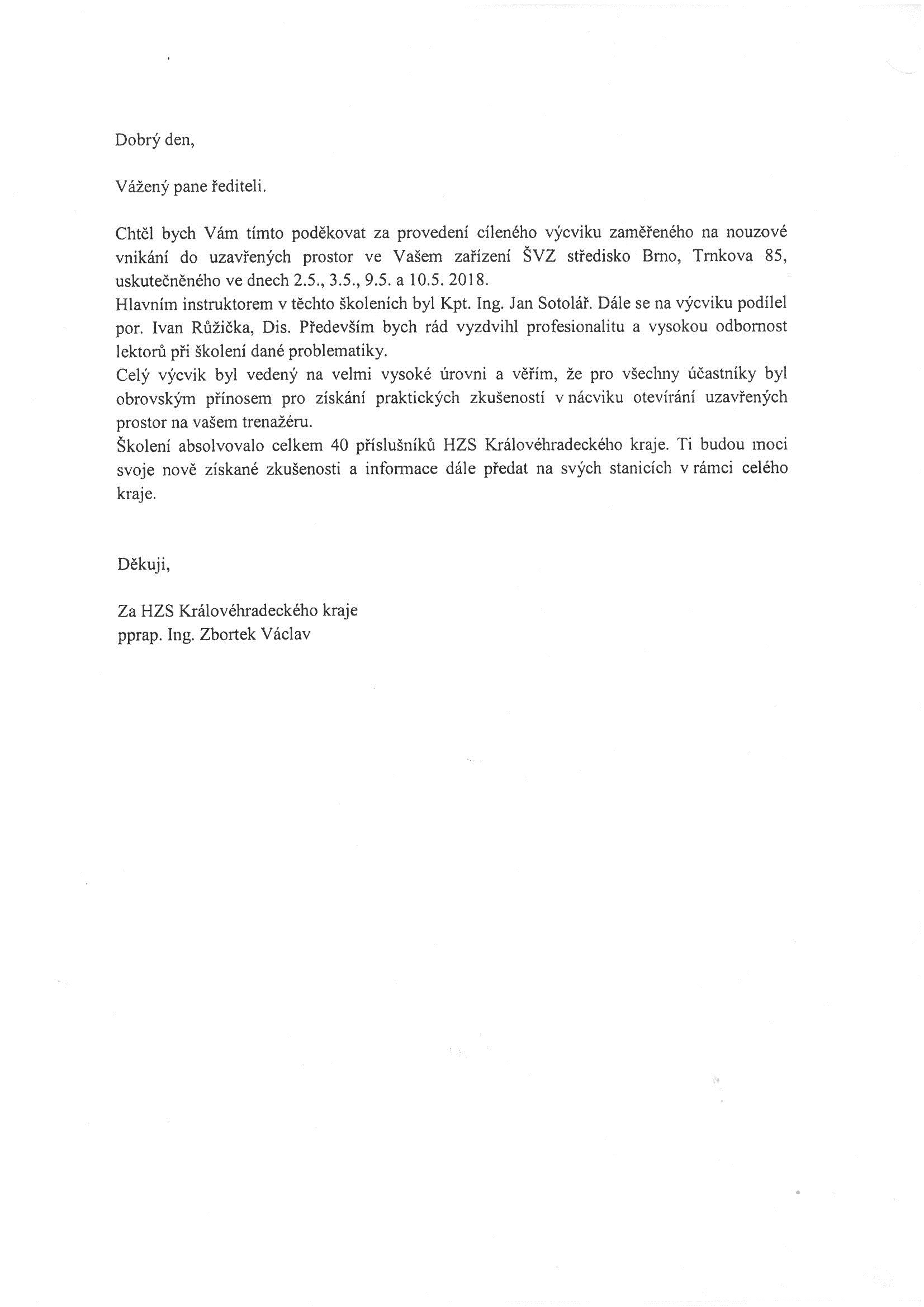 - Poděkování pprap. Ing. Zbortek Václav z HZS Královéhradeckého kraje (30.5.2018)