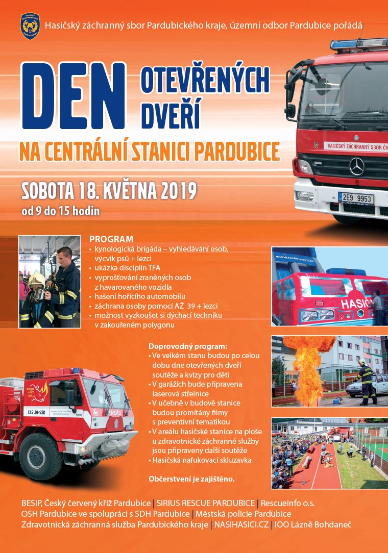 Hasičský záchranný sbor Pardubického kraje, územní odbor Pardubice pořádá v sobotu – 18. května na centrální požární stanici Den otevřených dveří.
