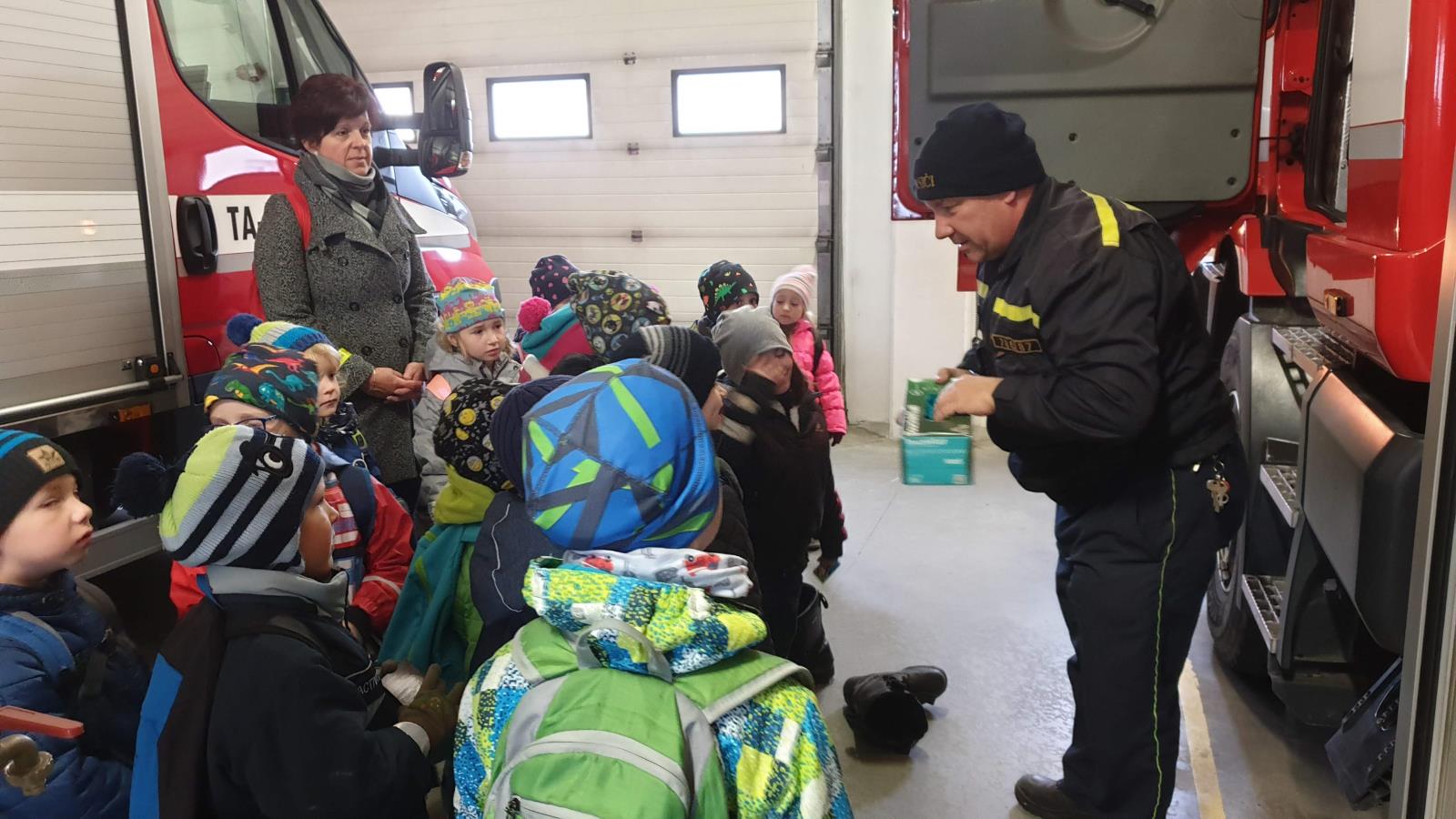 Děti nejvíce zajímala hasičská technika. Proto si v garážích prohlédli výjezdovou cisternu, její vybavení a také vše, co musí mít každý hasič na sobě, když jde do zásahu. Jako památku na návštěvu u hasičů každé z dětí dostalo magnetku s hasičskou tématikou.