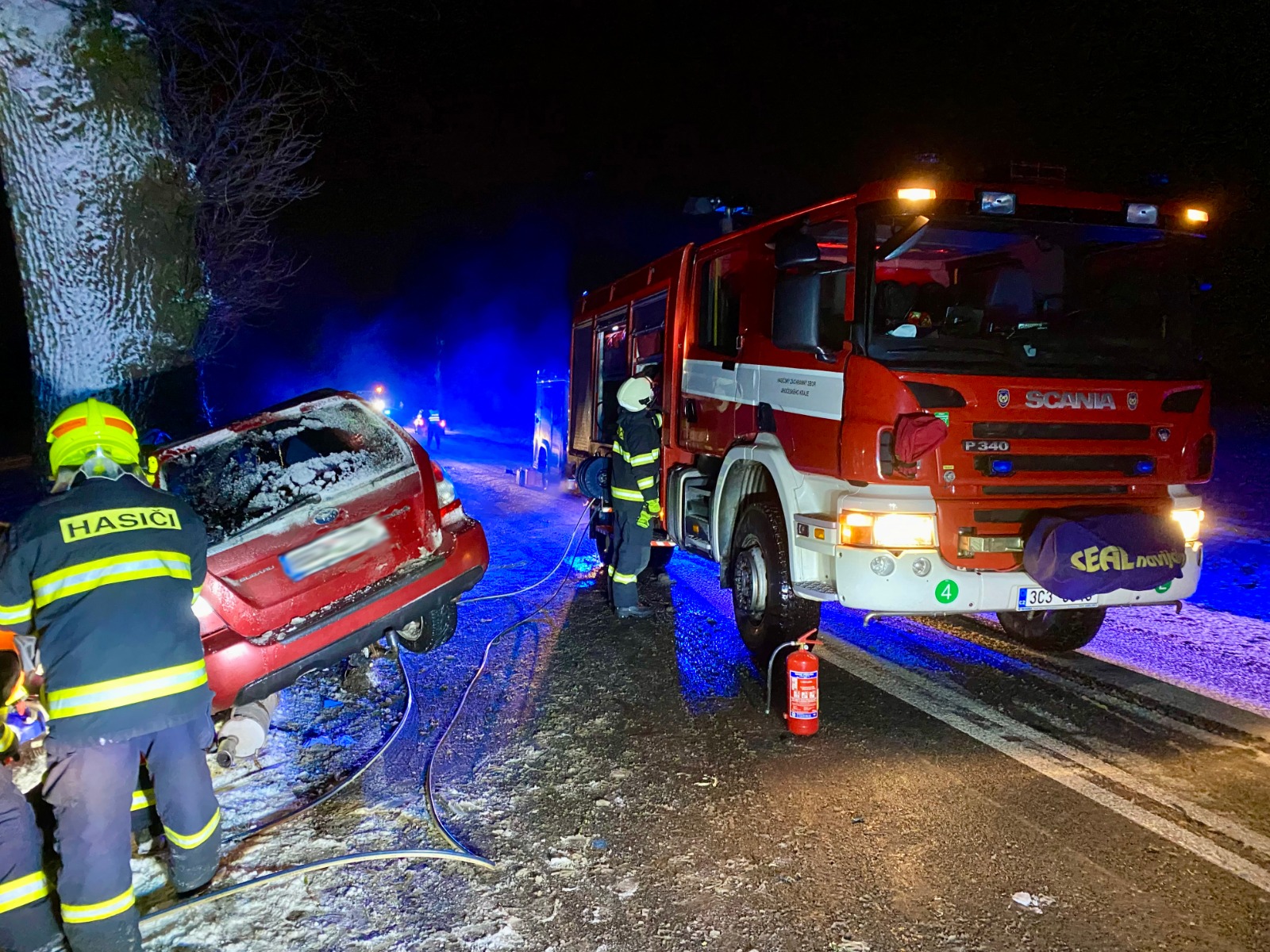 Nehoda byla na tísňovou linku ohlášena s nutností vyproštění zraněných osob. Tato skutečnost se po průzkumu na místě potvrdila. V havarovaném autě značky Subaru, které vyjelo ze silnice a narazilo do stromu, zůstal zaklíněný řidič. Hasiči společně se zdravotníky ihned zahájili záchranné práce. Bohužel lékař ZZS u řidiče konstatoval smrt.