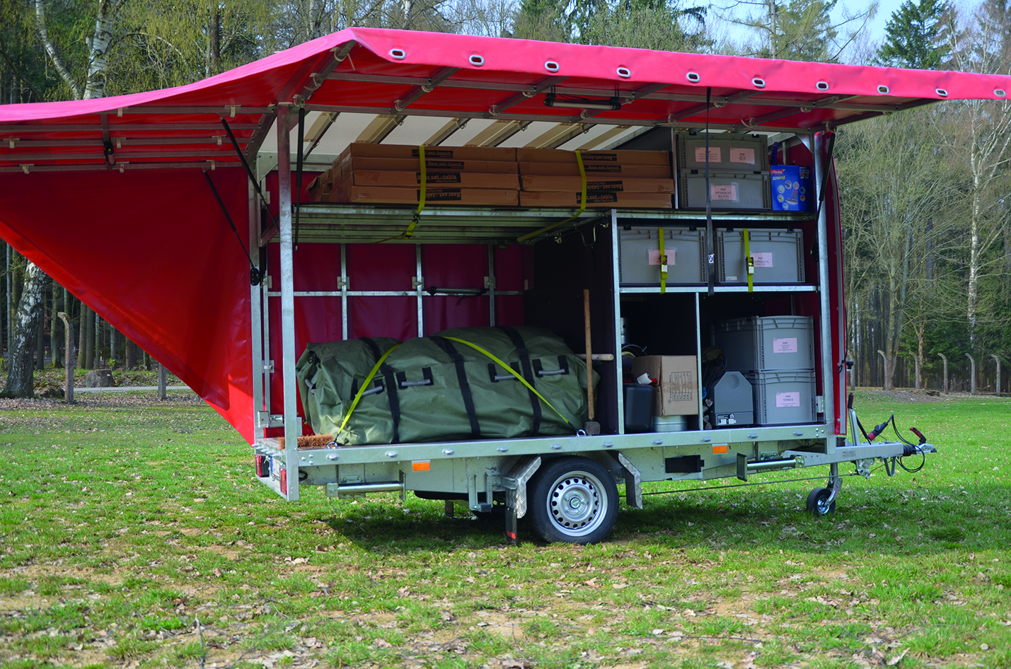 Nafukovací stan je uložen na transportním vozíku. Pro nájezd vozíku jsou pod ložnou plochou přívěsu uložené dva plechové nájezdy s G hlavou umožňující posunutí nájezdů po celé šířce ložné plochy. PNP obsahuje nafukovací stan 6×10 m s příslušenstvím (dmychadlo, hygienická vložka, kotvení, osvětlení), elektrocentrálu 5 kW, naftové topidlo, skládací stoly a lavice (osm setů), náhradní oblečení pro 20 osob, pět kusů dětského oblečení, 20 hygienických balíčků, 20 skládacích lehátek, 20 dek, termos s ohřevem vody, jednorázové nádobí a kelímky, sadu nářadí, prodlužovací kabely a skládací stojan na odpadkové pytle. Prostory přívěsu jsou osvětleny akumulátorovými svítidly s LED. Souprava náhradního oblečení je tvořena nově zakoupeným oblečením ve velikosti L a XL, které je uloženo ve vakuových pytlích a obsahuje mikinu, tepláky, triko, ponožky, trenýrky a gumové pantofle. Hygienický balíček obsahuje papírové kapesníky, gelovou dezinfekci, vlhčené ubrousky, papírový ručník a izotermickou fólii.