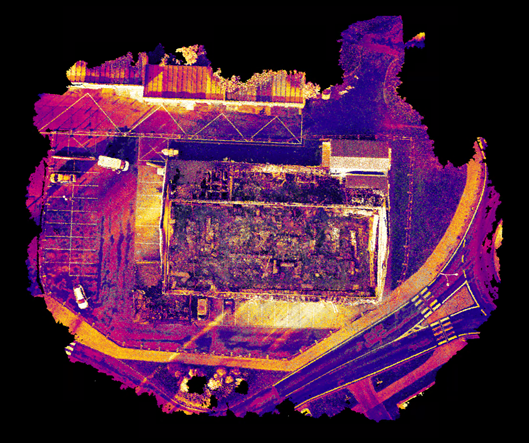 Na ukázkové studii „Požár Penny“ je dokumentován postup, jak CDS plní podporu HZS ČR. Využíval se zde dron s termokamerou a data byla získána za pomoci plánovaného letu. Dron DJI Mavic 2 Enterprise Advanced je snímal v obou částech elektromagnetického záření, a to v části RGB (viditelné světlo) a v části IR neboli termálního (obr. 6).