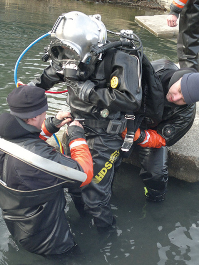 Kromě přilbového potápění není potápěč v klasickém neoprenovém ani „suchém“ obleku nikdy zcela izolován od okolního prostředí, ve kterém provádí ponor. Dokonce i pod celoobličejové masky se místy dostane voda. Potápěči proto hledali způsob, jak se potápět v kontaminovaném prostředí tak, aby byli zcela v suchu a bezpečí. Volba padla na přilbové potápění, které má velké výhody. Kromě již zmíněné možnosti použití do prostředí nebezpečných látek je to i naprosto bezproblémová komunikace s ostatními kolegy prostřednictvím kabelu, doba pobytu pod vodou díky povrchové dodávce vzduchu hadicí není omezena jako u klasického potápění, navíc v případě jakékoliv nehody mohou kolegové na povrchu ihned podniknout kroky k záchranné akci.