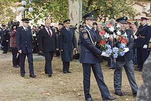 Jménem vdov a sirotků vystoupily Ivana Jahelková a Ivana Klimešová, aby poděkovaly všem, kteří nejsou lhostejní k neštěstí druhých. Vždyť nikdo z nás neví, co ho potká a kdy bude potřebovat pochopení. Vyzdvihly význam Nadace policistů a hasičů - vzájemná pomoc v tísni, která zprostředkovává solidaritu a spoluúčast společnosti s osudy pozůstalých rodin a poskytuje jim psychickou i finanční podporu a pomoc. Za doprovodu smutečních tónů Hudby Hradní stráže a Policie ČR byly poté k pomníku položeny věnce a zazněly čestné salvy. Po pietním ceremoniálu byl program ukončen služebním slibem třiceti nových příslušníků Policie ČR.