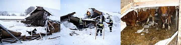 Během necelé hodiny (3.2.2010) nejprve spadla laminátová střecha haly se skladem hutního materiálu v Krnově, následně ve Světlé Hoře dvě třetiny střechy kravína. Dvě jednotky zasahovaly v Krnově a celkem sedm jednotek se podílelo na vyproštění a vyvádění několika desítek krav ze zničeného kravína. Obě události se naštěstí obešli bez zranění. Stejně tak se bez zranění a zavalení osob obešel pád střechy pod tíhou sněhu nad tribunou fotbalového stadionu v okrese Tachov, kde zasahovaly dvě jednotky požární ochrany.