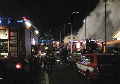 Požár objektuKrajské operační a informační středisko (KOPIS) HZS Karlovarského kraje vyslalo na místo události jednotku ze stanice Cheb. Při jízdě k zásahu bylo již z dálky vidět vysoko šlehající plameny ze střechy jedné ze tří budov. Velitel jednotky na základě vizuálního průzkumu povolal na místo zásahu další jednotky PO.