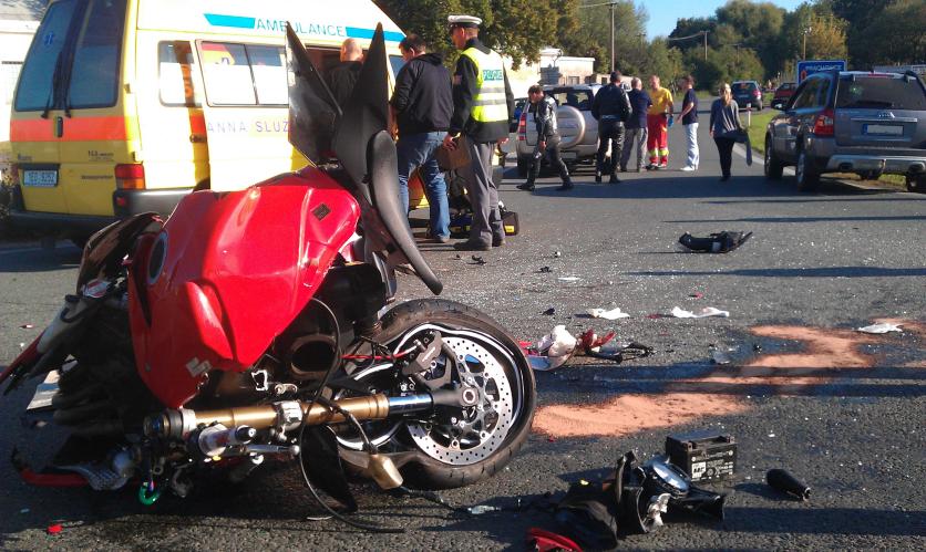 Nehoda motocyklu a osobního automobilu u Heřmanova Městce