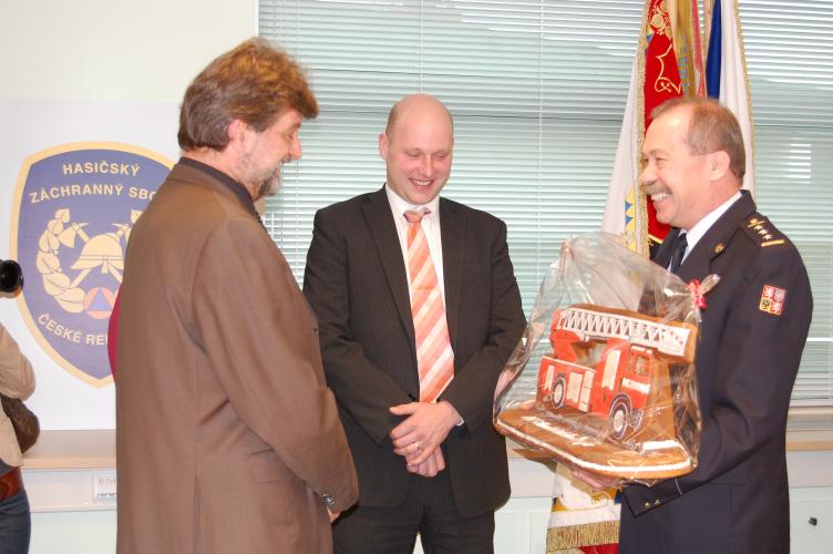 Na závěr setkání předal krajský ředitel hasičů ministru dárek – pardubický perník v podobě hasičského vozidla od krále perníku Pavla Janoše.