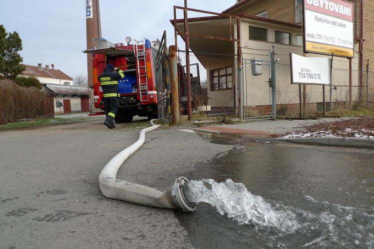 V pondělní dopoledne v 11.37 hodin hasiči z Pardubic vyjížděli do Opatovic nad Labem, kde došlo k zatopení suterénu ubytovny. Při příjezdu jednotky na místo bylo zjištěno, že v objektu je zhruba půl metru vody. Hasiči nasadili k odčerpání vody plovoucí a kalové čerpadlo. Příčinou zatopeného suterénu byl prasklý kotel. V 14.25 hodin se podařilo vodu odčerpat a prostory předat zpět majiteli objektu.