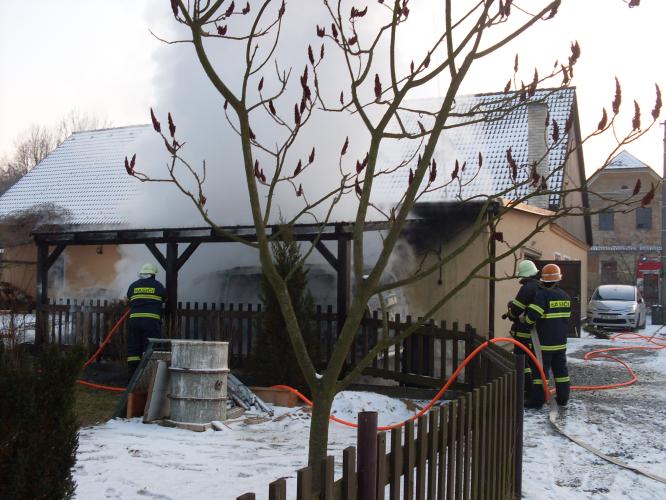 Hasiči likvidovali požár domu, přístřešku i luxusního vozidla