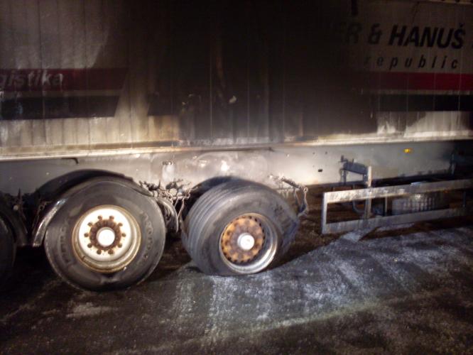 Kamion hořel a uvnitř bylo 26 tun ledku