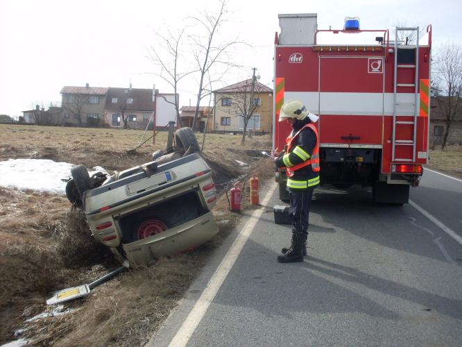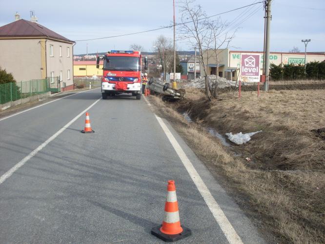 V neděli 4. března v 14.38 hodin vyjížděla profesionální jednotka hasičů do ulice Rváčovská v Hlinsku. Tady došlo k nehodě osobního automobilu Fiat Bravo. Automobil skončil na střeše v příkopu a ve voze se nikdo nenacházel. Řidič odešel z místa události ještě před příjezdem složek integrovaného záchranného systému. Hasiči zajistili standardně vozidlo proti požáru i úniku provozních náplní. Poté, co policisté zadokumentovali všechny stopy k vyšetření nehody, hasiči vozidlo otočili na kola pomocí navijáku na zásahovém vozidle a odtáhli ho mimo komunikaci. Dále odklidili sklo, plasty ale i bláto a vrátili se zpět na základnu.
