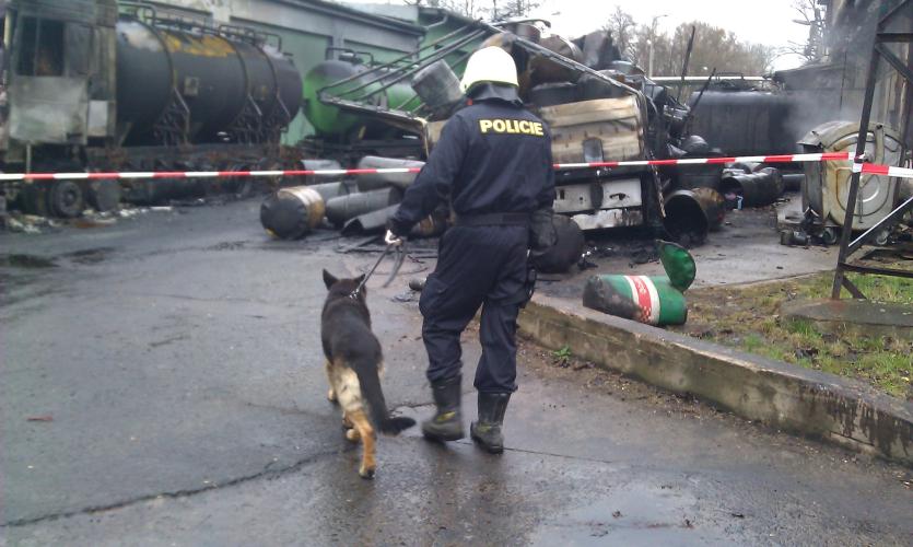 Do některých částí skladů byl vpuštěn i speciálně vycvičený pes na vyhledávání hořlavých kapalinDo některých částí skladů byl vpuštěn i speciálně vycvičený pes na vyhledávání hořlavých kapalin