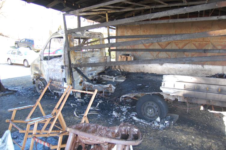 Plameny zničily přístřešek i zaparkovanou dodávku