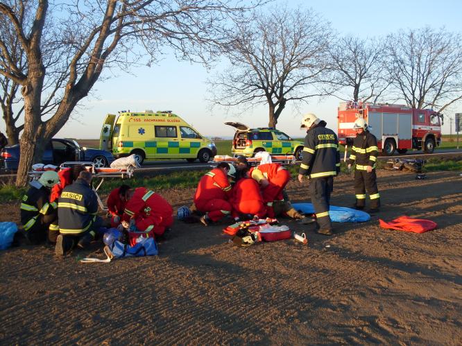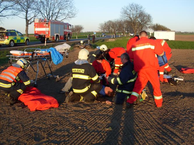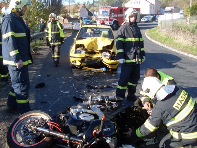 K nehodě motorkáře a osobního vozidla do Podhořan vyjížděly dvě jednotky hasičů