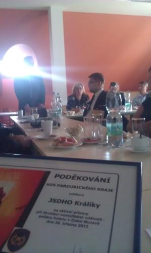 Setkání se zúčastnili starostka města Králíky Jana Ponocná a plk. Ing. Miroslav Kvasnička, ředitel HZS Pardubického kraje, kteří se ve svém projevu shodli, že je velmi důležité i v této těžké ekonomické době podporovat dobrovolné jednotky, protože jejich pomoc je velmi důležitá a nepostradatelná.