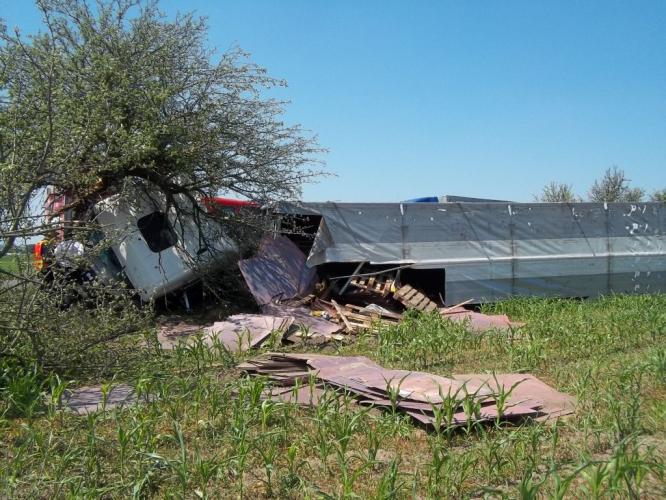 V pondělí 18. června v 10.57 hodin vyjížděli profesionální hasiči z Holic k dopravní nehodě do Chvojence, kde se převrátil na bok kamion. Hasiči na místě museli ihned po příjezdu ošetřit zraněného řidiče a poté ho předali do péče zdravotnické záchranné službě. Při nehodě došlo k úniku hydraulického oleje do zeminy. Hasičům se podařilo většinu oleje zachytit. Přesto na místo byli přivoláni pracovníci životního prostředí a Správy a údržby silnic Pardubického kraje. Pracovníci správy a údržby silnic provedli likvidaci kontaminované zeminy. Na místo byla povolána firma Vápeník se speciálním vyprošťovacím automobilem k vyproštění převráceného nákladního automobilu. Škoda na návěsu a převáženém zboží je dle Policie ČR 7 milionů korun. Událost ze strany hasičů byla ukončena v 13.37 hodin.