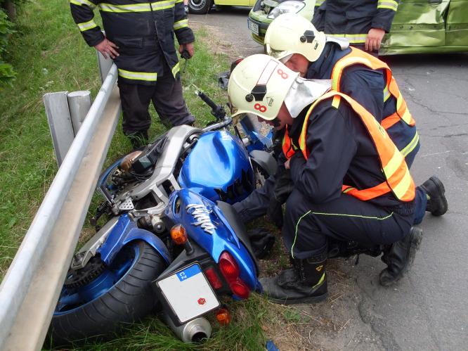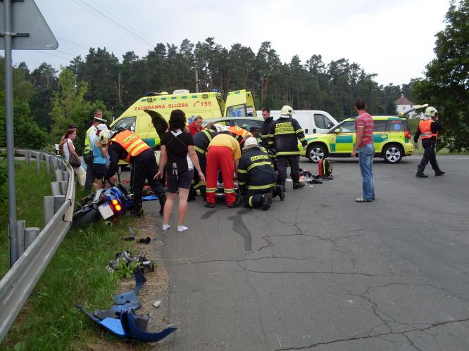 Motorkář utrpěl zranění po střetu s osobním vozem