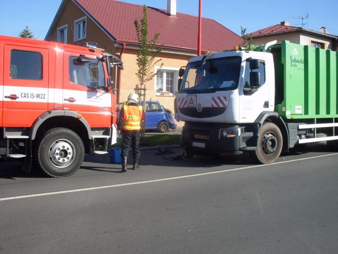 V pondělí 23. července v 8.10 hodin vyjela jednotka hasičů z Hlinska na příkaz operačního a informačního střediska hasičů k dopravní nehodě na silnici I/34 v Hlinsku, na Adámkovu třídu. Po příjezdu na místo hasiči zjistili, že se jedná o náraz nákladního vozu zezadu do osobního automobilu, které bylo odhozeno na zeď rodinného domu. Z nákladního auta vytékal olej. Nehoda se naštěstí obešla bez zranění. Hasiči provedli zajištění vozidel proti požáru odpojením autobaterií a posypali komunikaci sorpčním materiálem tam, kde se nacházely ropné látky. Po zdokumentování nehody dopravními policisty, odstranili hasiči plasty, skla i nasáklý sorbent a vrátili se na základnu.