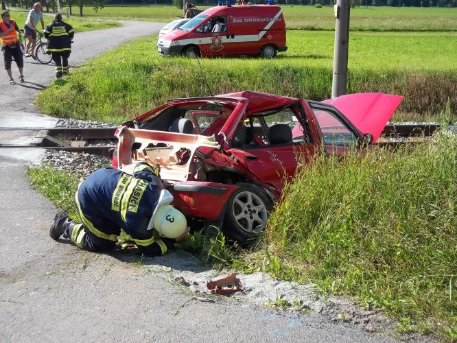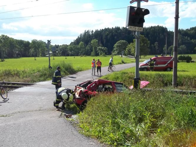 Automobil se na železničním přejezdu střetl s osobním vlakem