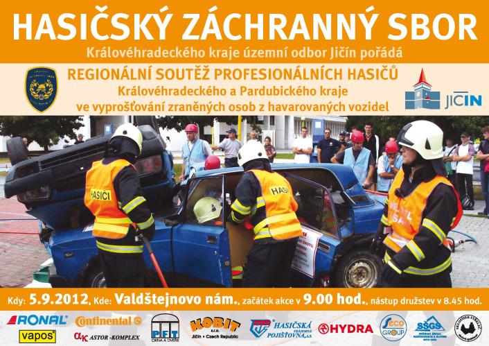 Ve středu 5. září od 9 hodin se na Valdštejnově náměstí v Jičíně uskuteční další kolo Regionální soutěže profesionálních hasičů Královéhradeckého a Pardubického kraje ve vyprošťování zraněných osob z havarovaných vozidel.