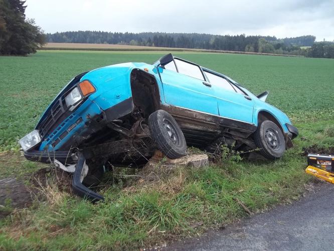 Vozidlo uvízlo na pařezu, řidič byl zraněn