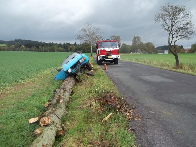 Jednotka hasičů ze stanice Žamberk vyjížděla v pondělí 8. října v 13.03 hodin do Kameničné, kde došlo ke kolizi osobního automobilu Škoda 120, který sjel do příkopu a následně narazil do pařezu. Při nehodě byl zraněn řidič, kterého ošetřila posádka zdravotnické záchranné služby. Vozidlo po nárazu přední částí do pařezu bylo nakloněno na pravou stranu a přes víčko nádrže docházelo k úniku benzínu. Jednotka hasičů provedla odpojení autobaterie a unikající benzín hasiči jímali do sorpčních rohoží. V místě události hasiči řídili dopravu. Po vyšetření dopravní nehody policisty bylo vozidlo za pomoci navijáku na hasičském vozidle vyproštěno z pařezu, ponecháno na krajnici vozovky a předáno rodinným příslušníkům zraněného řidiče, kteří si zajistili jeho odtah. Hasiči odstranili následky nehody a vrátili se zpět na základnu.