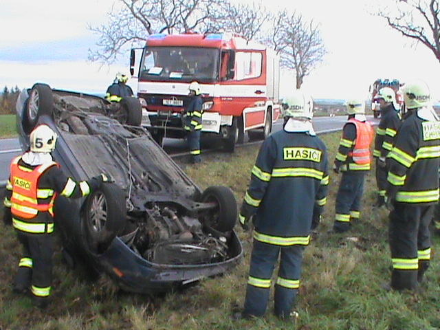 Dne 3. listopadu v 11.02 hodin vyjížděli profesionální a dobrovolní hasiči z Chrudimi k dopravní nehodě, jež se stala na silnici z Chrudimi do obce Kočí. Jednalo se o osobní automobil, který skončil jízdu na střeše. Při nehodě byla lehce zraněna řidička vozidla. Hasiči ihned po příjezdu provedli první před lékařské ošetření a po příjezdu zdravotníků na místo byla osoba předána do jejich péče. Hasiči dále zabezpečili místo zásahu a zajistili vozidlo proti vzniku požáru. Po zadokumentování nehody policisty, hasiči provedli otočení a následně i vytažení vozidla. Nakonec hasiči vozidlo odstranili z vozovky, aby nebránilo plynulému silničnímu provozu.