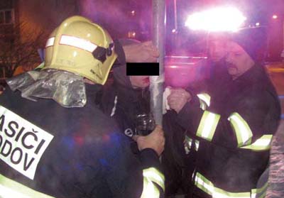 Muži spadl do kanálu mobilní telefon. Ten sice vytáhl, ale s ním nahoru putoval i kus kanálu jako velmi těžká obruč, s níž nešlo bez újmy na zdraví hnout. Na tísňovou linku hasičů zavolali jeho kamarádi. Hasiči se pokusili litinovou skruž sundat u obnaženého kanálu, ale bez úspěchu. Proto postiženého muže převezli i se skruží do nemocnice v Orlové, kde zdravotníci pomazali muže vazelinou pro lepší skluz kanálu. Dolů to i přes nově uzpůsobenou „hladkou“ cestu nešlo. Pak ale hasiči vyzkoušeli jinou variantu – cestu vrchem přes hlavu - a povedlo se! Bez rozřezání kanálu.