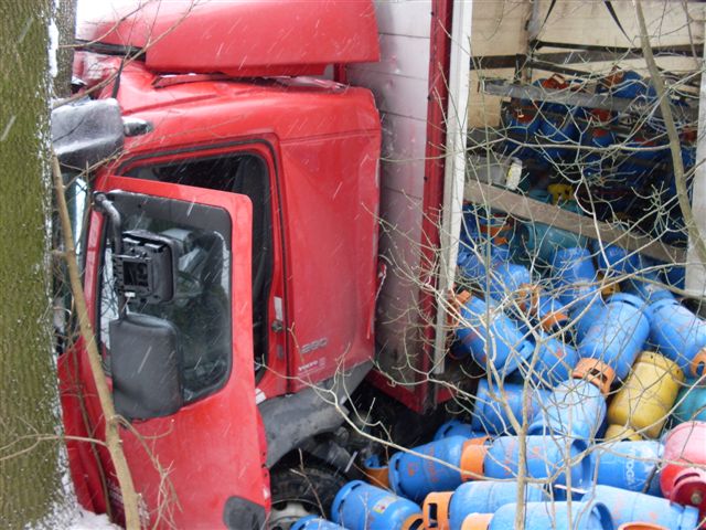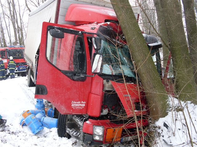Řidič narazil s kamionem do stromu, převážel propan butanové lahve
