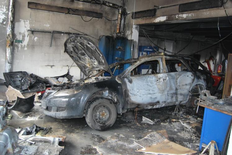 Auto v dílně ve Velkém Březně začalo hořet od jisker z kotoučové brusky.