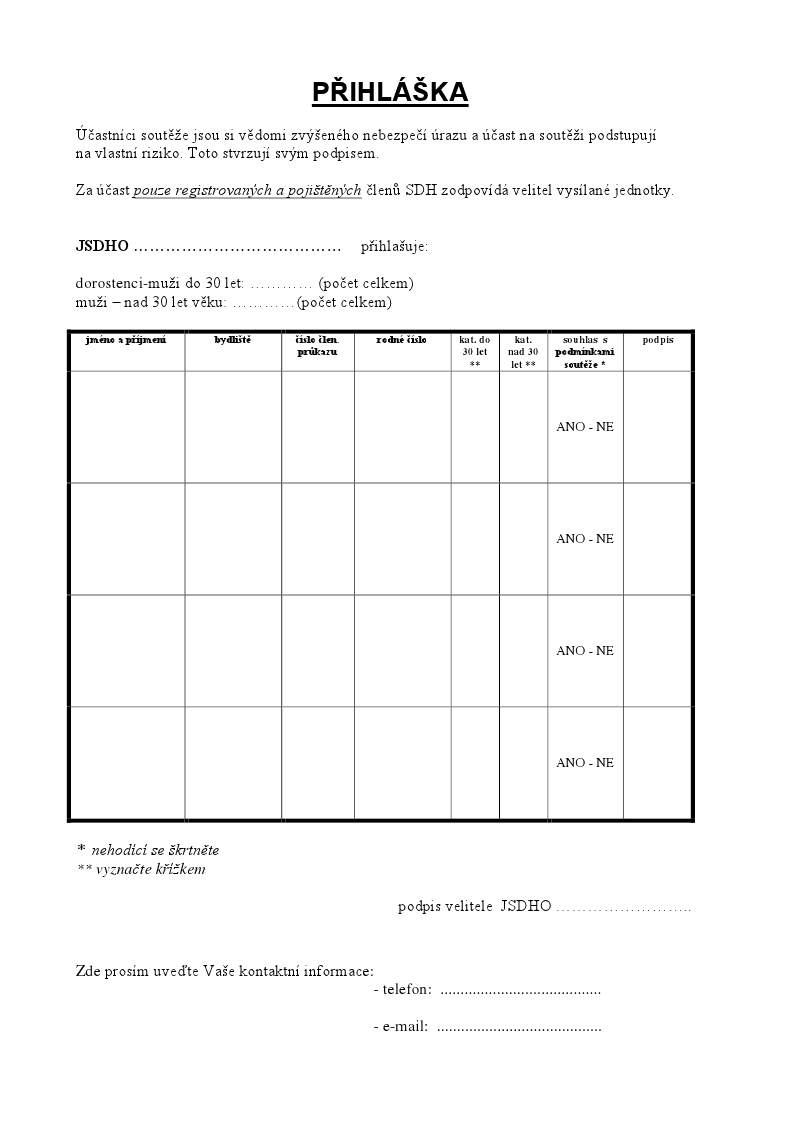 Do soutěže bude přihlášeno max. 100 soutěžících, z jednoho sboru mohou být přihlášeni max. 4 závodníci! (Tímto dáváme prostor většímu počtu sborů)