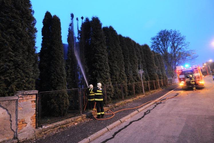Hasiči likvidovali požár dvou, sedm metrů vysokých tůjí.