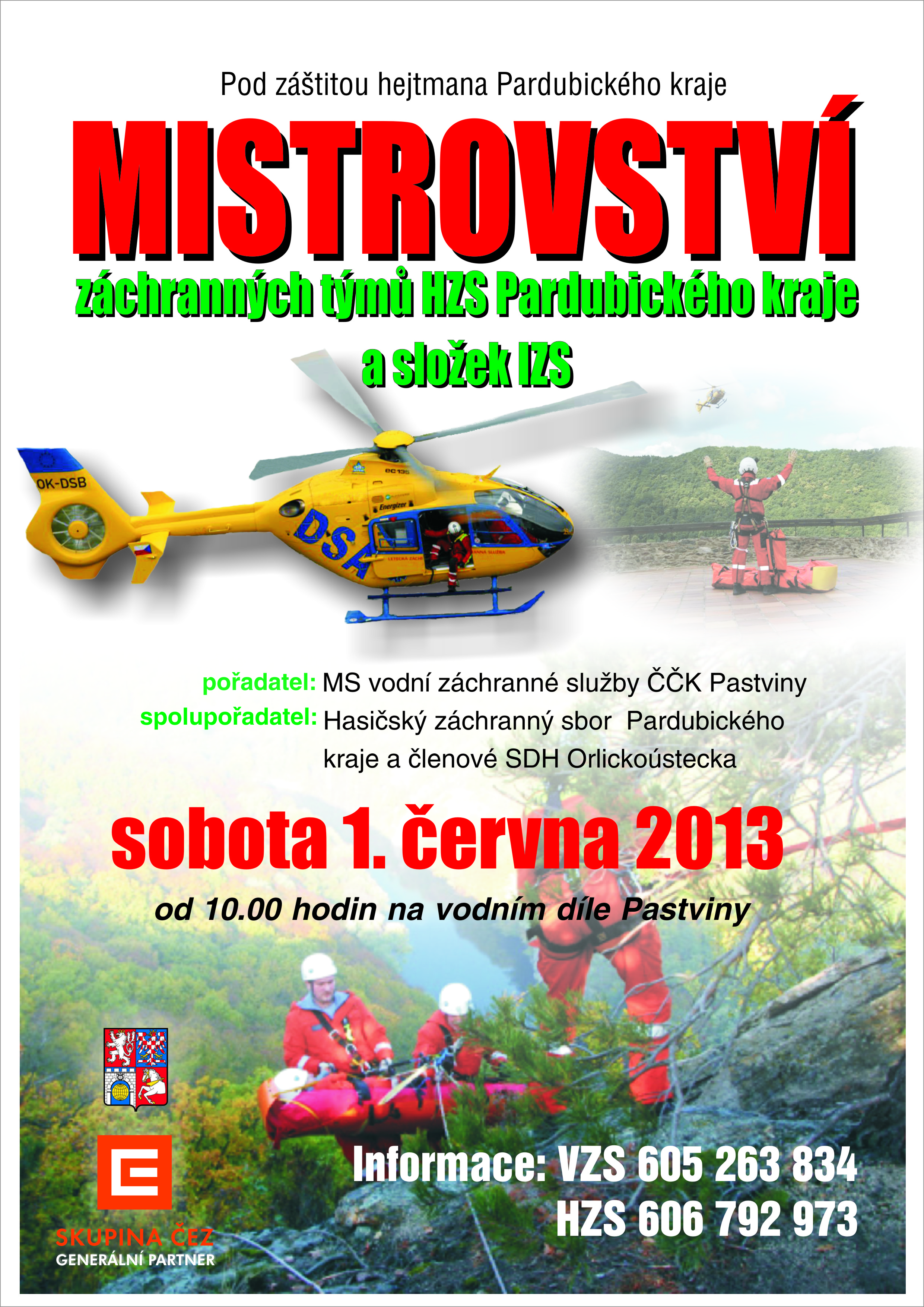 Dne 1. června od 10 hodin se vodní dílo Pastviny promění v záchranné centrum – konat se tady bude Mistrovství záchranných týmů HZS Pardubického kraje a skupin IZS. Pořadatelem je MS vodní záchranná služba ČČK Pastviny. Spolupořadatelem je Hasičský záchranný sbor Pardubického kraje a členové SDH Orlickoústecka. Mistrovství se koná pod záštitou hejtmana Pardubického kraje.