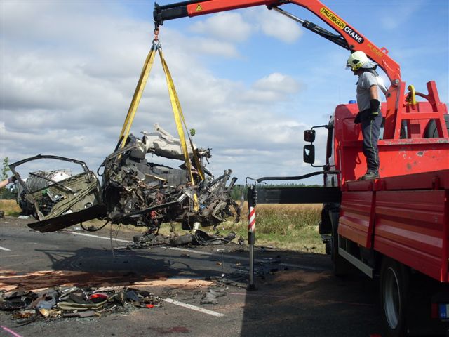Po příjezdu hasičů na místo zjistili, že uvnitř jednoho vozu je osoba, která utrpěla smrtelná zranění a další osoba (řidič kamionu) byla dle slov zdravotníků lehce zraněna. Silnice I/35 byla neprůjezdná a policisté zajistili objízdné trasy přes Strakov a Čistou. Hasiči provedli zasypání uniklého oleje sorbentem a po příjezdu dopravních policistů a následném vyšetření a zadokumentování nehody, vyprostili ze zdemolovaného automobilu pomocí vyprošťovacího zařízení tělo muže. Dále hasiči naložili zdemolovaný Renault na vozidlo hasičského kontejneru a s dalšími zbytky vozu, jež byly rozházeny po celé vozovce, převezli na policejní dvůr pro provedení expertízy. Na místo byli povoláni také pracovníci správy a údržby silnic, kteří prováděli úklid vozovky. Událost byla ze strany hasičů uzavřena v 12.25 hodin.