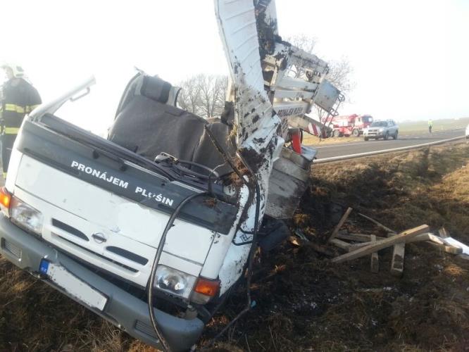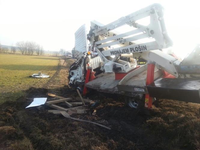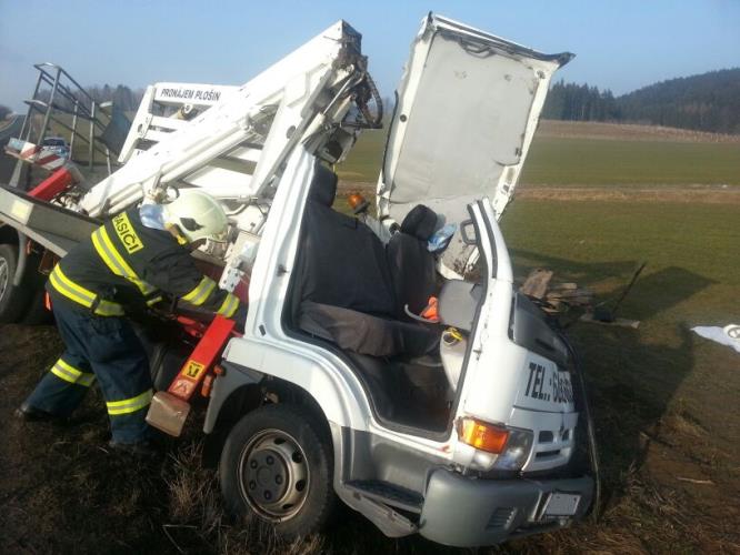 Ve Vendolí se převrátila plošina, řidiče vyprostili hasiči
