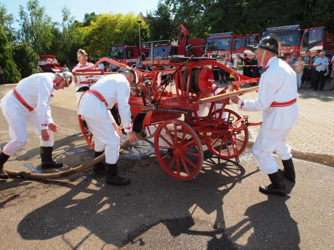 ukázky zásahu s ruční zápřahovou stříkačku, kterou si připravili členové sdružení Naše hasičská minulost z Expozice požární ochrany ve Zbirohu. Jednalo se o cvičení, které je přesně secvičeno podle metodiky vydané Zemskou ústřední hasičskou jednotou v roce 1899.