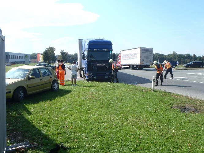 Při střetu osobního vozu s nákladním byla zraněna ridička