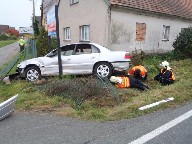 V sobotu 11. října v 15.59 hodin vyjížděli profesionální hasiči z Chrudimi spolu s dobrovolnými hasiči ze Slatiňan k dopravní nehodě, ke které došlo na silnici I/37 u obce Výsonín. Jednalo se o jeden osobní automobil Opel, kdy řidič z dosud nezjištěných příčin vyjel mimo vozovku, projel plotem u místního rodinného domku a skončil zcela zaklíněný mezi stojanem na reklamu – billboardem. Ve voze cestovala čtyřčlenná rodina, z toho byly dvě děti. Dospělé zraněné osoby si převzala do péče zdravotnická záchranná služba.