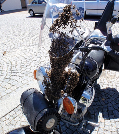 Že na silném motocyklu můžeme vidět jen drsné muže nebo krásné ženy oděné v kůži? Omyl. Jeden z nablýskaných strojů zaparkovaný před budovou radnice v centru Kroměříže si 20. května odpoledne „osedlal“ roj včel. Na místo netradičního zásahu byla vyslána jednotka profesionálních hasičů z Kroměříže. Že se nejedná o žert, potvrdil za pár minut i velitel jednotky. Roj včel se totiž usadil přímo na přední části chromem zářícího motocyklu. Za velkého zájmu přihlížejících občanů tak museli hasiči včely z motorky odstranit vysavačem na likvidaci rojů bodavého hmyzu.