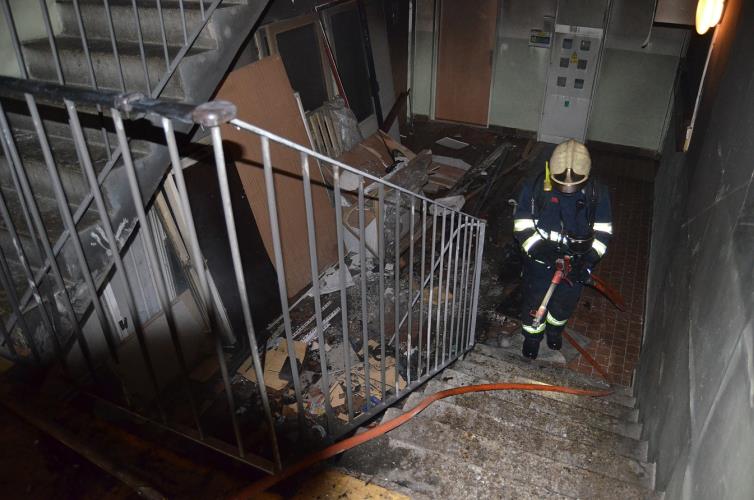 Požár odpadu v panelovém domě
