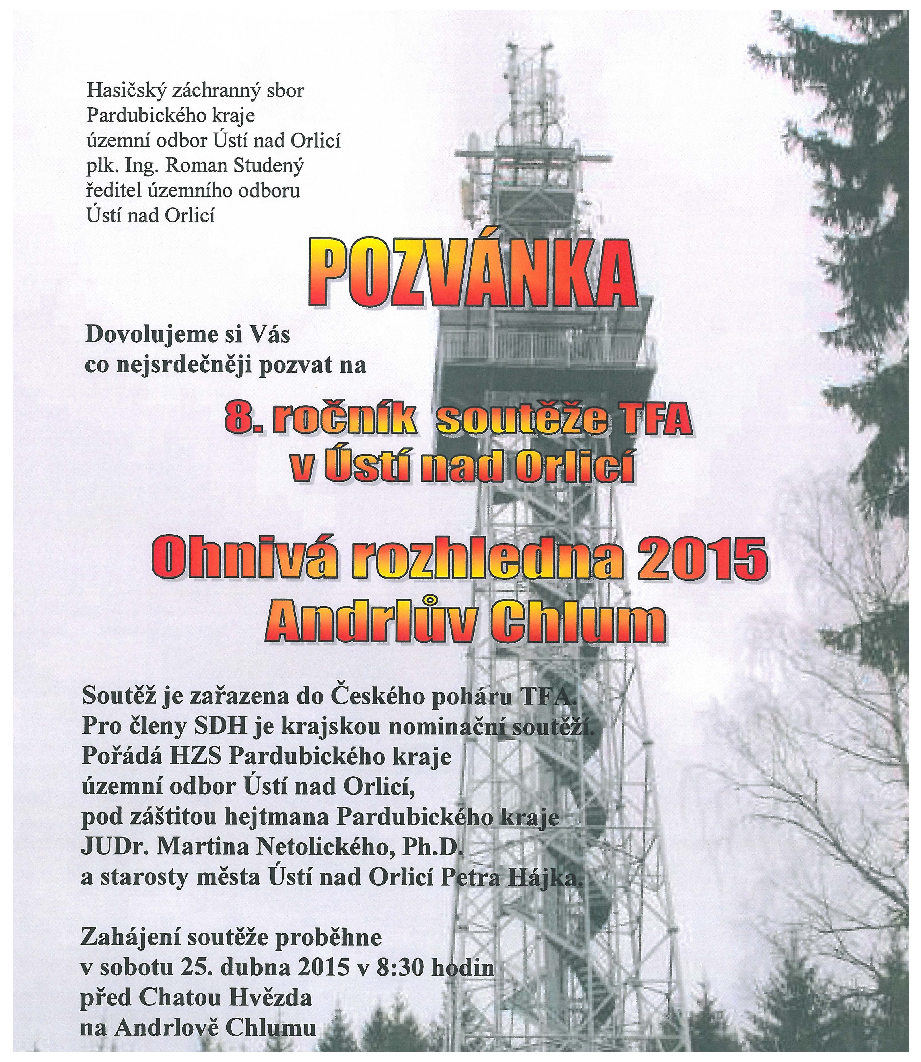 Hasičský záchranný sbor Pardubického kraje územní odbor Ústí nad Orlicí pořádá pod záštitou hejtmana Pardubického kraje Martina Netolického a starosty města Ústí nad Orlicí Petra Hájka již osmý ročník soutěže v náročných disciplínách TFA.