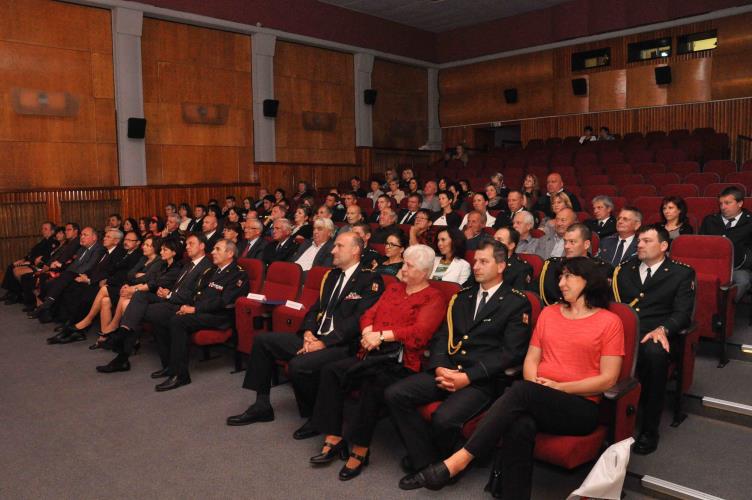 Zatímco dopoledne a část odpoledne byla spíše ve sportovním duchu, tak večer v místním kině se již nesl v duchu ryze slavnostním. Mezi pozvanými hosty byli také všichni současní i bývalí příslušníci, kteří na stanici v Chotěboři sloužili. Na fotografiích byla promítnuta nejenom budova stanice a její proměny v průběhu čtyř desetiletí, ale díky unikátnímu archívu se podařilo sestavit také spot, ve kterém byly zachyceny největší mimořádné události od roku 1975 až po současnost. Nechyběly samozřejmě fotografie všech příslušníků a spot se „střípky“ zachycující každodenní život hasičů. Od starosty Města Chotěboře Ing. Tomáše Škaryda chotěbořští profesionální hasiči dostali k tomuto významnému výročí stuhu k praporu.