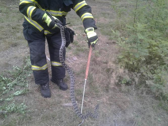 V úterý v 17,15 hod se na hasiče prostřednictvím linky tísňového volání 112 obrátil lesní dělník, který při práci v lese nedaleko Bělského Dvora (mezi obcí Koberovice a vodní nádrží Želivka) našel hada. Na místo události vyjela jednotka profesionálních hasičů ze stanice Humpolec.