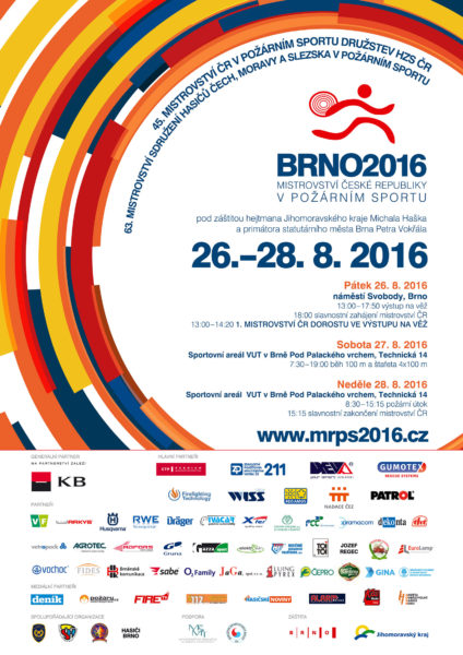 25. 8. 2016 (Nicole Zaoralová) – Ve dnech 26. – 28. srpna 2016 se bude v Brně konat 45. Mistrovství České republiky v požárním sportu družstev Hasičského záchranného sboru České republiky a 63. Mistrovství Sdružení hasičů Čech, Moravy a Slezska v požárním sportu. Obě akce se konají pod záštitou hejtmana Jihomoravského kraje Michala Haška a primátora statutárního města Brna Petra Vokřála.