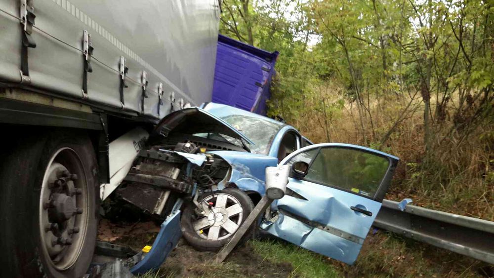 Pod koly kamionu zůstalo po střetu zaklíněné osobní auto. Nehoda se stala krátce před desátou hodinou dopolední u Hazlova na Chebsku. V osobním autě v době nehody cestovali tři osoby, hasiči nemuseli nikoho vyprošťovat, všechny tři osoby odvezla sanitka do nemocnice. Při nehodě se zranili dva dospělí a jedno dítě. Hasiči ze stanice Aš a dobrovolní hasiči ze Skalné zajistili místo nehody a zůstali na místě do doby, než odtahové služby vyprostili vozidla kvůli případnému úniku provozních kapalin.