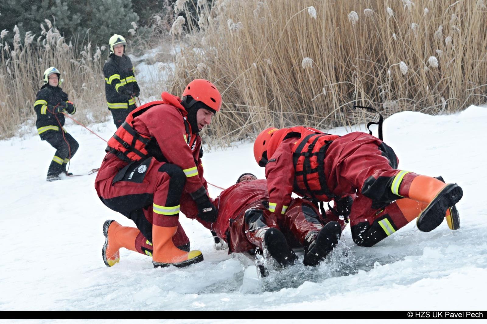 Sérii výcviků záchrany osoby na zamrzlé hladině zakončilo prověřovací cvičení.